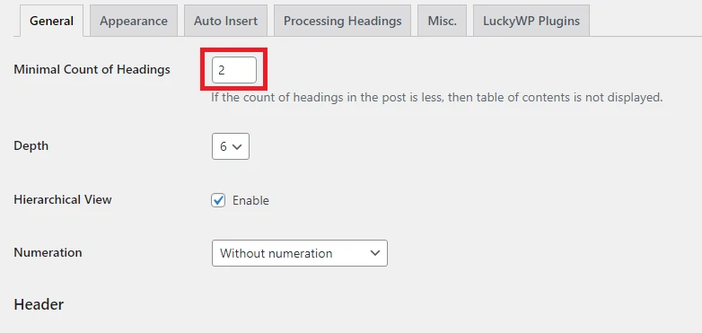 Ubahlah angkanya menjadi 2. Nantinya, ketika artikel Anda memiliki lebih heading yang berjumlah lebih dari dua, maka daftar isi akan secara otomatis terbuat.